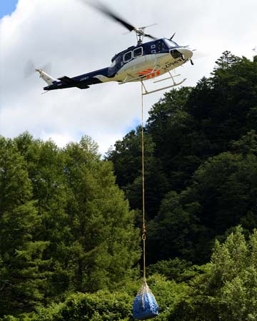 業界でも高い評価をいただいている木材搬出をはじめ、送電線の建設、山間部の治水や治山工事、山小屋の食料運搬、災害からの復旧工事、無線関連施設の資材輸送、国立・国定公園に於ける遊歩道の補修資材やトイレなどの環境整備資材輸送など、豊富な実績を誇ります。
